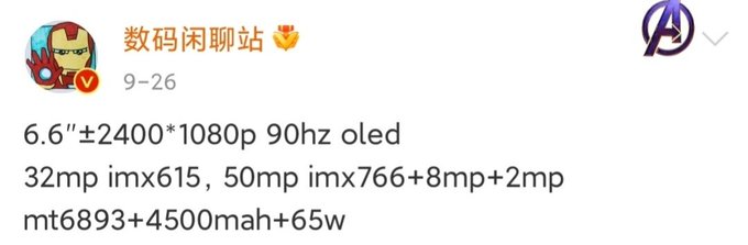 reports. The latest leak corroborates an earlier report suggesting that the phone will pack a MediaTek Dimensity 1200 SoC. A 4,500 mAh battery with 65W fast charging support could power up the entire system. Aside from that, the phone will reportedly ship with 12GB of RAM.