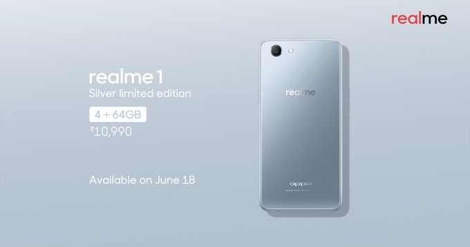Oppo RealMe 1 limited edition Silver variant with 64GB storage and 4GB of RAM is set to go on sale from June 18 exclusively on Amazon India at Rs 10,990.