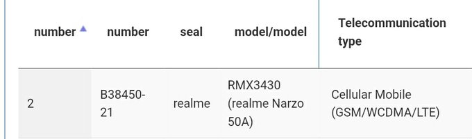 The former listing did not shed light on the upcoming phone's specs or price. However, the latter suggests that the Realme RMX3430 will be a 4G-ready smartphone with 4G LTE support. Furthermore, it indicated that the phone will launch carrying the Realme Narzo 50A 4G moniker in the market. Regrettably, the listing did not divulge more pieces of information. However, more details could surface online in the coming weeks.