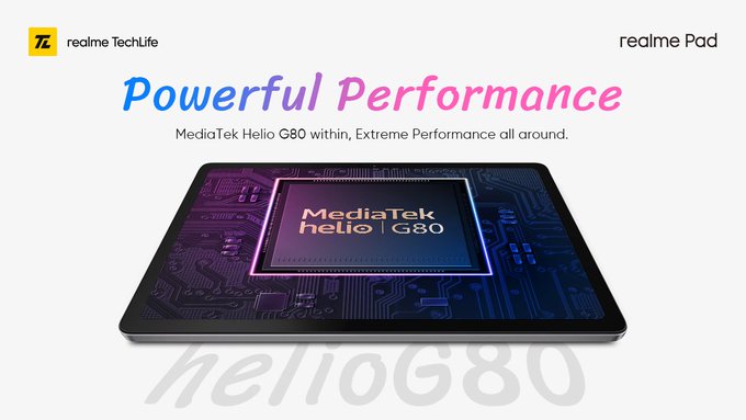 report, the Realme Pad will come with a MediaTek Helio G80 SoC, and a robust 7,100 mAh battery with 18W fast charging.