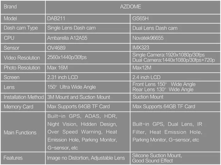 Features wise, the Azdome DAB211 seem to be better equipped with tons of interesting functionalities, the GS65H has less of them, but it still packs all the basic ones.