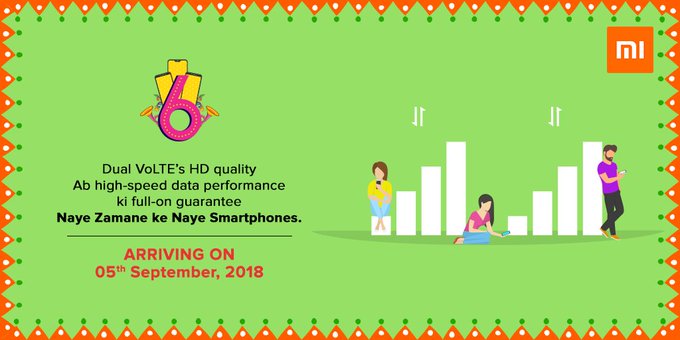 phones would not sport a notch. And the third one (Redmi 6 Pro) would come with it. Now, a new teaser was posted today that reveals dual 4G VoLTE capacity of the phone.